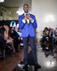 Silver custom-made dress with bold red cape- where elegance meets power.